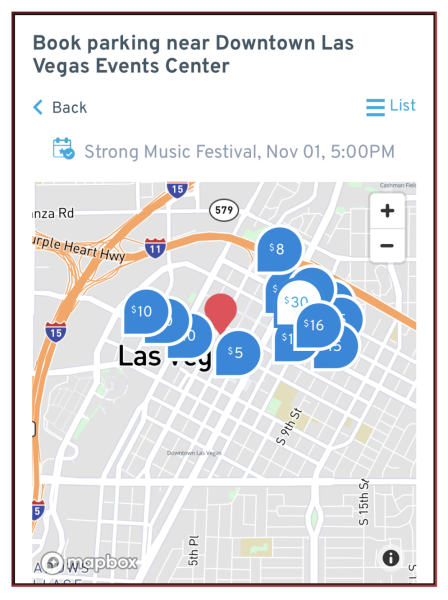 0.2 mi to 0.5 mi away from the event, and the prices range from $5 to $30. Senior Teran Neal states, “I like that they give the location and prices for parking. I like that i lets you pay for parking weeks before the event.”